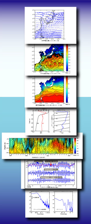 | 当事業所では海洋・気象・水産海洋関連のデータについて、各種統計手法に基づいた解析や種々の計算を行っています。データはお客様御提供のもの以外に、右図のように一般に公開されている衛星データや温度データ等を公開元より収集、整理し、解析を行うことも可能です。処理結果の作図が必要な場合、出力形式については印刷はもちろん、電子文書としてJPEGから、PDFやポストスクリプト、アドビ社のイラストレータ形式等迄御提供可能ですので、論文原稿等出版物にそのまま御使用できます。また、データ入力や報告書作成業務も承ります。当業務担当者は海洋物理分野でCTDや流速計等のデータ解析を25年以上行なっておりますので、海洋、気象や水産海洋関連のデータ解析や諸計算については、下記に無いものについても、是非お問い合わせ下さい。なお、当事業所では個人やNPO、NGOのお客様も歓迎致します。 過去に扱った測器の例 |